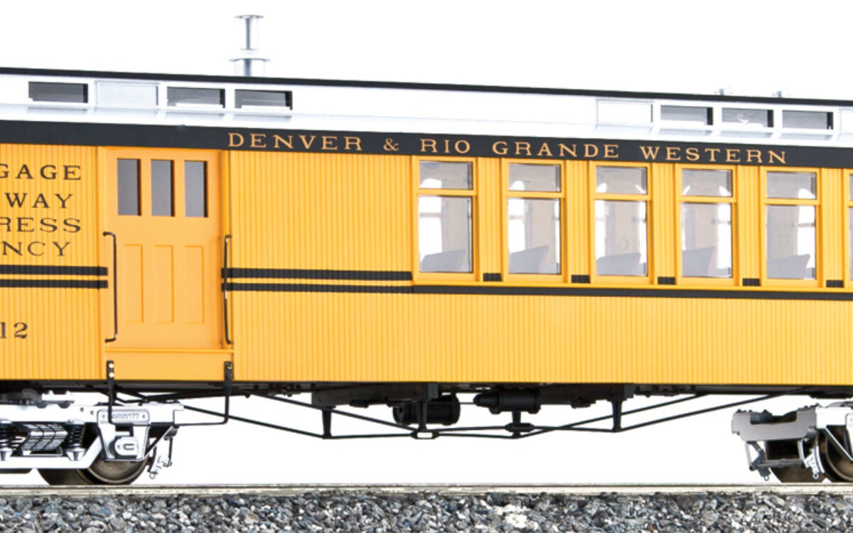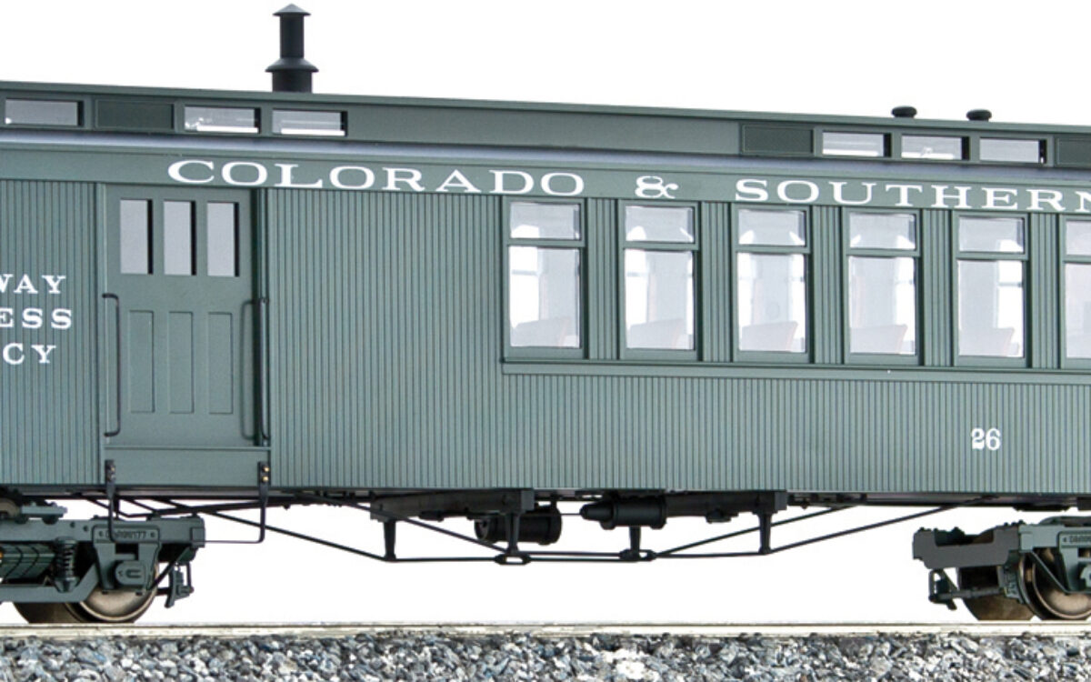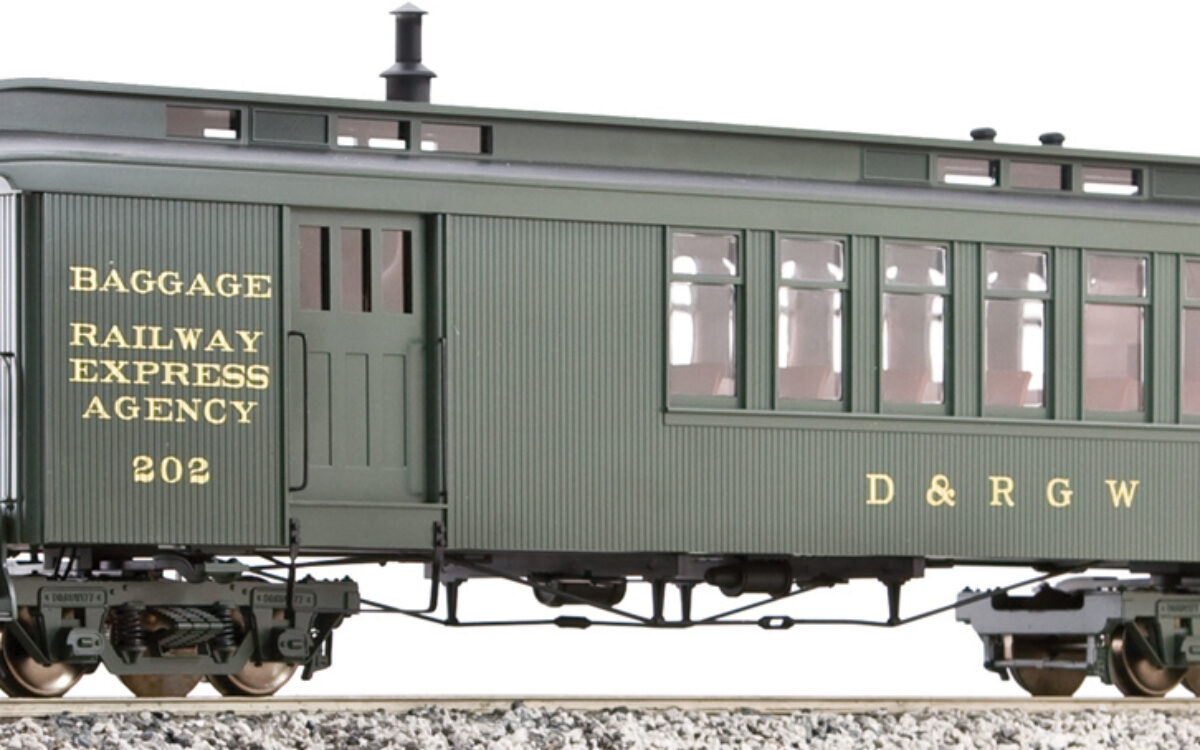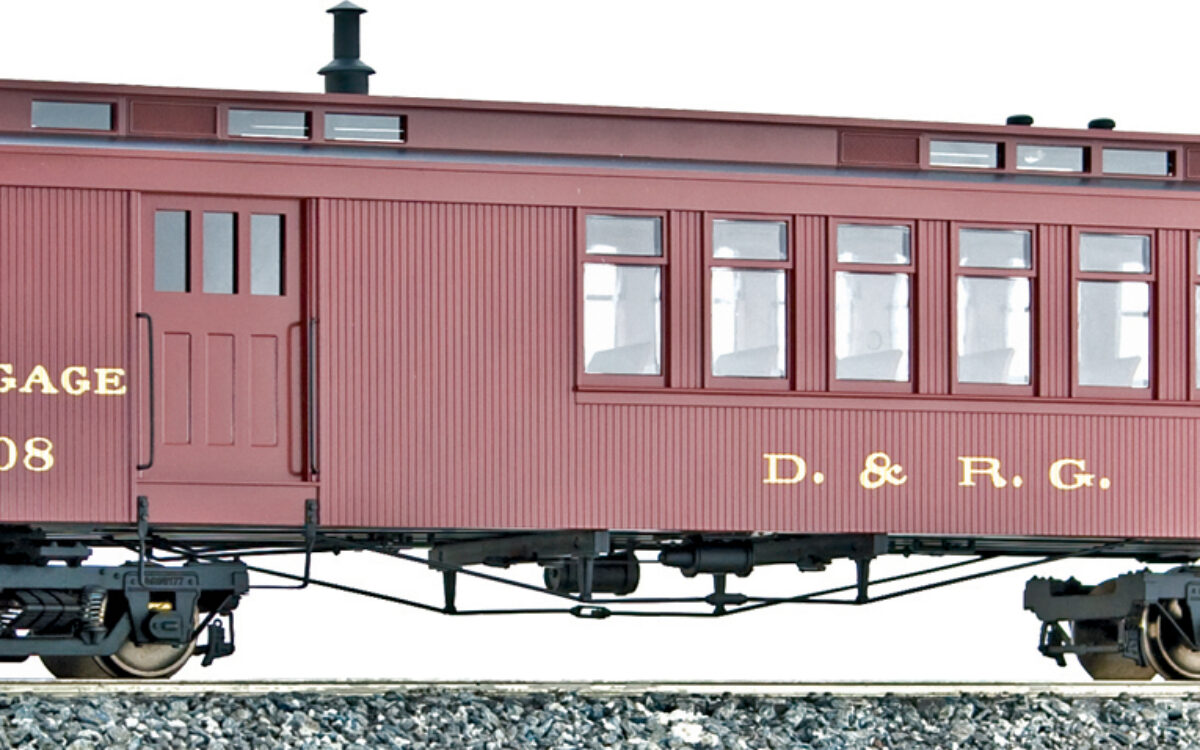 Accucraft’s D&RGW passenger cars were originally built by the Jackson Sharp company in the early 1880’s. The D&RG rebuilt them over the years with larger windows, and other improvements on an as needed basis! In the 1920’s the coaches went through the car shops again to have more improvements made! This included having the bodies and platforms lowered, under-frame reinforced, and extension side bearings installed. Accucraft’s models are of the later rebuilt cars.