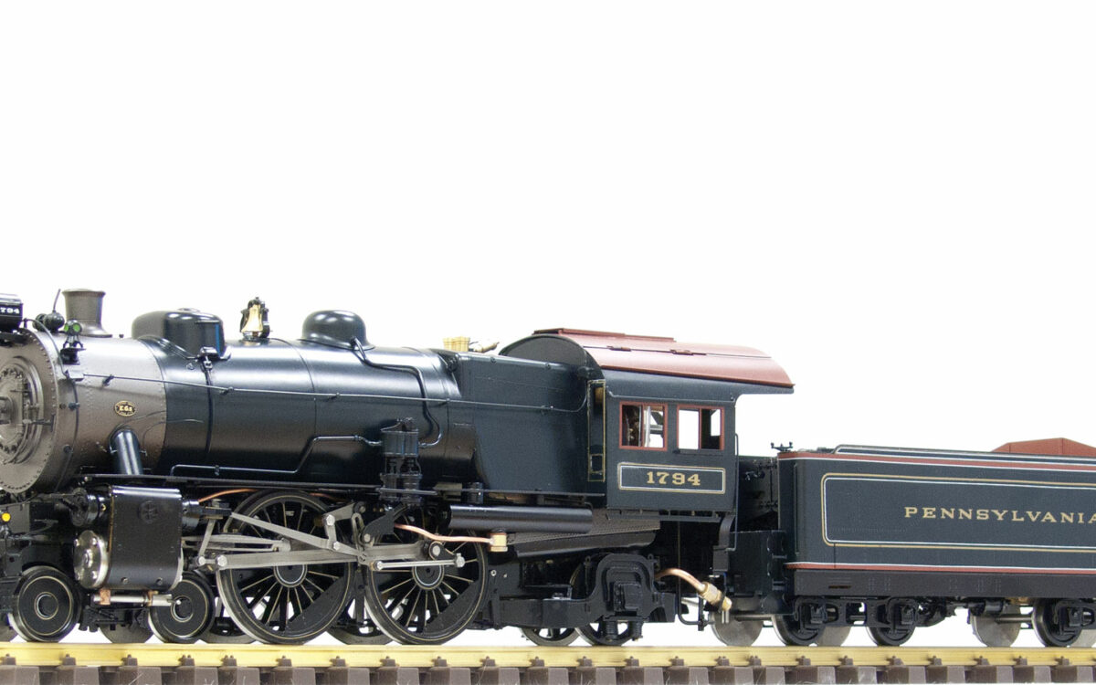 The E-6 class were the last 4-4-2 “Atlantic” type locomotives built by the Pennsylvania Railroad. A total of 83 were constructed between 1910 and 1914. These modern design Atlantics featured a large and free-steaming boiler, outside Walschaert valve gear, piston valves on the cylinders, and a cast steel KW pattern trailing truck designed by the PRR’s Chief Mechanical Engineer, William F, Keisel Jr. Although replaced by larger K-4 class Pacifics on most top-rated trains, the E-6s remained popular on lesser services, especially commuter operations around the New Jersey seashore routes. Nine were transferred to the Pennsylvania-Reading Seashore Lines; some were also leased to PRR subsidiary Long Island Rail Road.